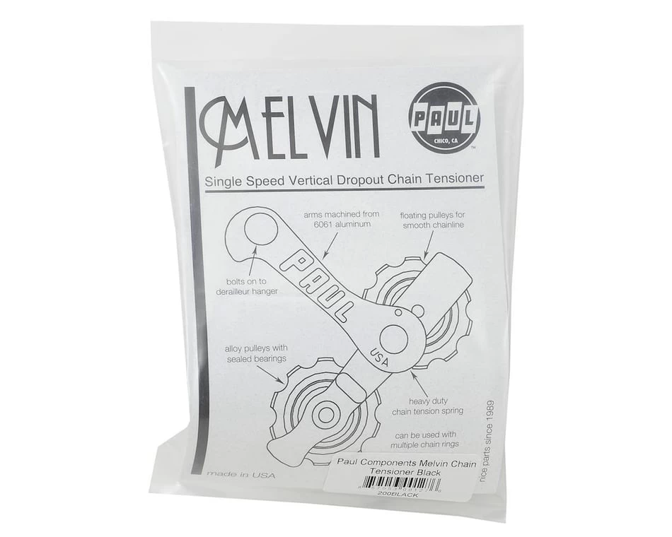 Want to build a single speed without having to buy a dedicated frame? Try the Melvin. The Melvin bolts to the frame where the rear derailleur would normally go and allows the use of a single speed rear wheel on bikes with vertical dropouts.